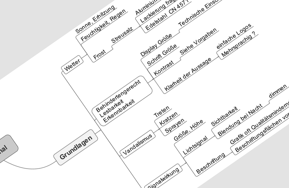 Wir benötigen im Vorfeld umfassende Informationen über das Produkt und alle Randbedingungen damit unsere Konzepte und Designstudien fundiert und richtig sind. Wir nutzen eine Reihe spezieller Tools um Einflussfaktoren zu berücksichtigen. Die Analyse befasst sich mit vielen Einflussfaktoren wie Bedienung, Vandalismus, Technik, Ergonomie und bei vielen Produkten auch mit der urbanen Kultur des Einsatzortes. Die Analyse und Konzepte werden visuell aufbereitet und präsentiert.